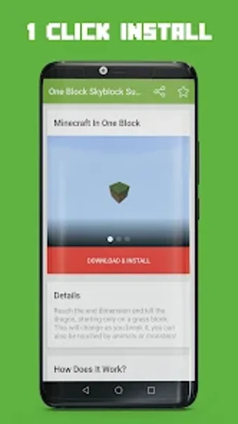 يتميز هذا التطبيق بخريطة Minecraft In One Block والتي هي خريطة بقاء على قيد الحياة حيث يبدأ اللاعبون بمكعب عشب فقط ، ومن هذا المكعب ، يتعين عليهم الحصول على كل ما يحتاجونه لقتل Enderdragon. هذا التطبيق مثالي لعشاق Minecraft الذين يبحثون عن تحدي جديد.